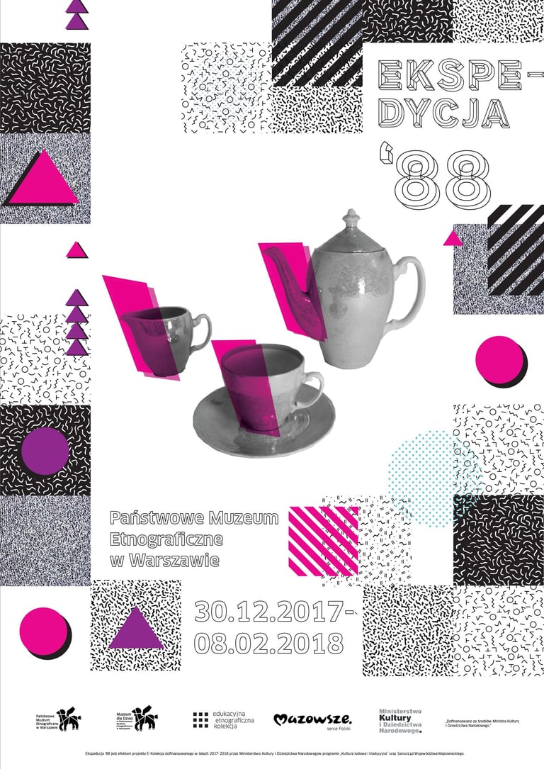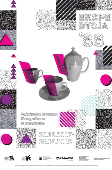 The graphic identification of the exhibition was based on the dynamic design reminiscent of the 1980s style, rich in neon colors and geometric patterns.