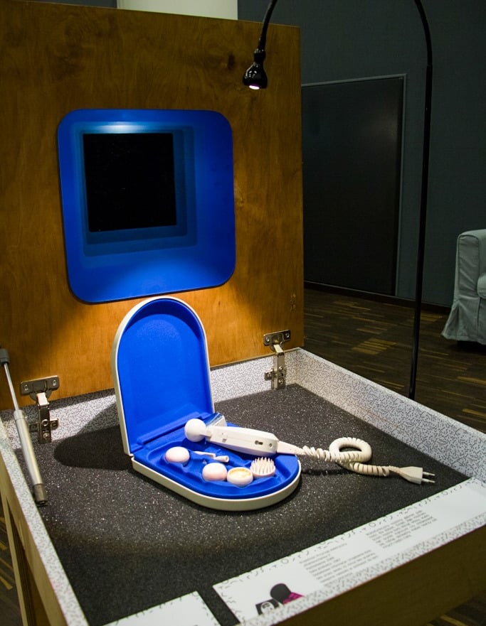The main part of the exhibition were cubes with exhibited objects and two mobile units reflecting typical life of a young man and woman in 1980s.