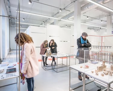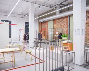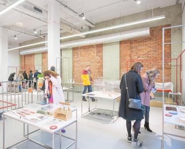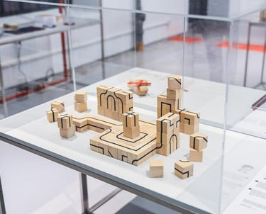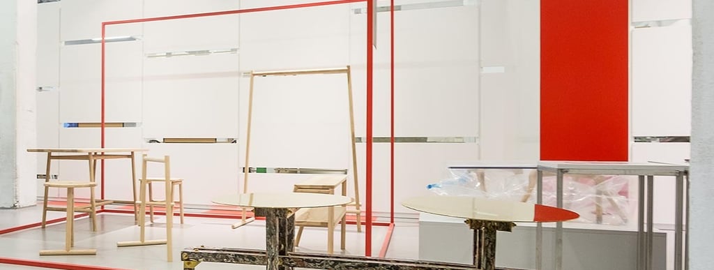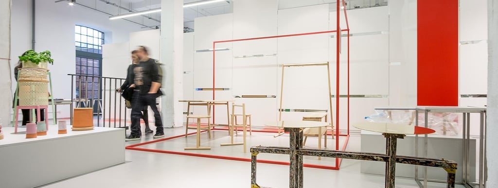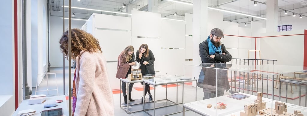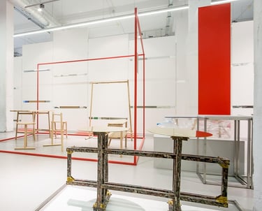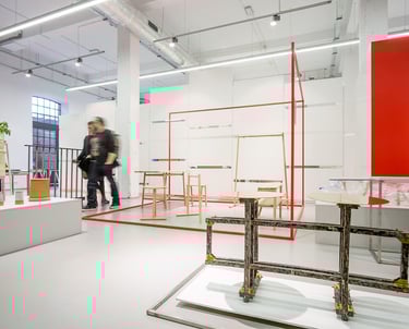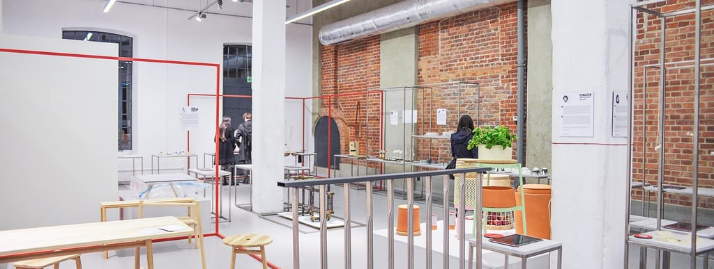 The post-competition exhibition make me is a permanent element of the Łódź Design Festival. When designing the exhibition space for the works of young designers, we wanted to avoid the dominance of the arrangement over the exhibition. It resulted in light, openwork displays made of steel profiles with red accents emphasizing the awarded designs.
