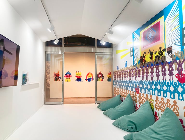 The arrangement of this zone emphasizes the visitor experience, inviting free interaction with Polish visual art for children and teenagers.