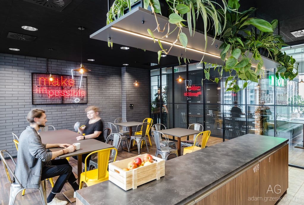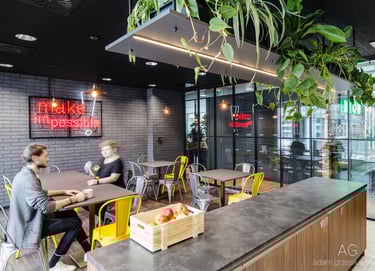 Loft, industrial design, neon signs, transparency, 130 employees on 1700 m2, central networking and event area, interactive showroom, work zones tailored to the nature of the editorial. The new office for virtual portals of the Onet-RASP group is a space designed to connect people and generate ideas. Interior design by Workplace Solutions is a prototype of future offices of the organization. In addition to the pilot character, the office is a showroom that shows the direction of the organization's development and work culture.