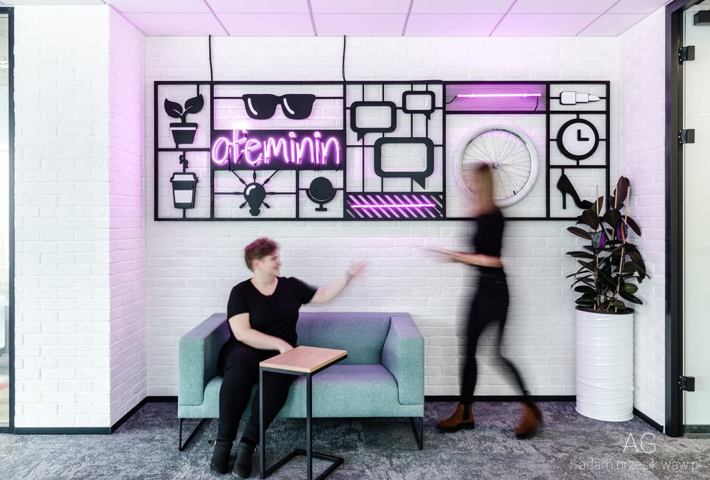 2X3 studio together with Forward Agency and Dorota Stępniak Studio was responsible for space branding and wayfinding of the office. They created visually rich environment. Neon signs and vibrant colors enliven the space inspired by the New York loft climate. Branding of each editorial team was used in the design of personalized neon signs. Collages using various pop-cultural themes facilitate spatial communication.
