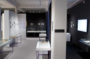 The exposition extends across several interconnected rooms, where bright and dark spaces harmoniously intertwine, creating distinct thematic zones. Original documents, scores, and memorabilia related to Klecki are presented in display cases placed on minimalist frames. Despite settling in Switzerland before World War II, Klecki never severed his ties with Poland.